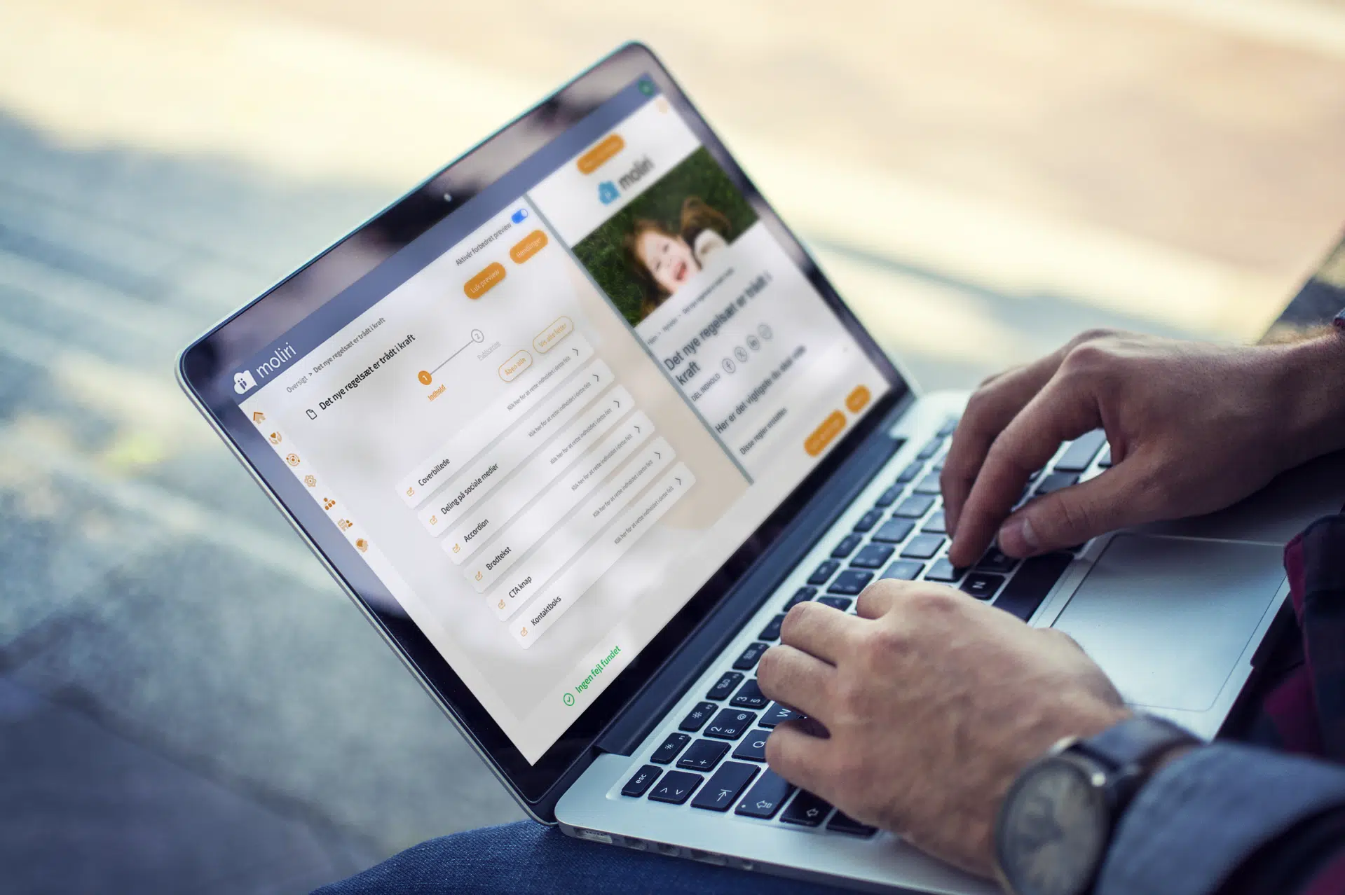 Den redaktørvenlige indholdsoprettelse gør det nemt og tidsbesparende at arbejde med systemet. Du slipper f.eks. for at tage stilling til spacing, komplekse grids, eller bruge energi på at justere designet til, så det også fungerer på en mobilskærm. Med moliri fjerner vi unødig kompleksitet og baner vejen for, at du kan lave god webkommunikation.