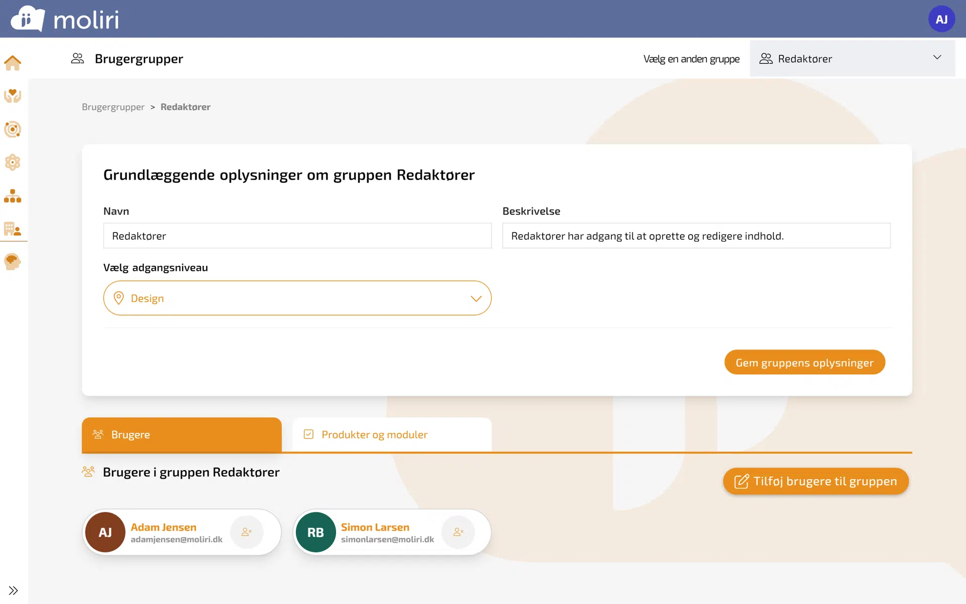 Med moliri kan I både tage kontrol over jeres brugeres adgangsniveau og oplevelse af platformen, og dermed hjælpe dem til en nemmere hverdag.